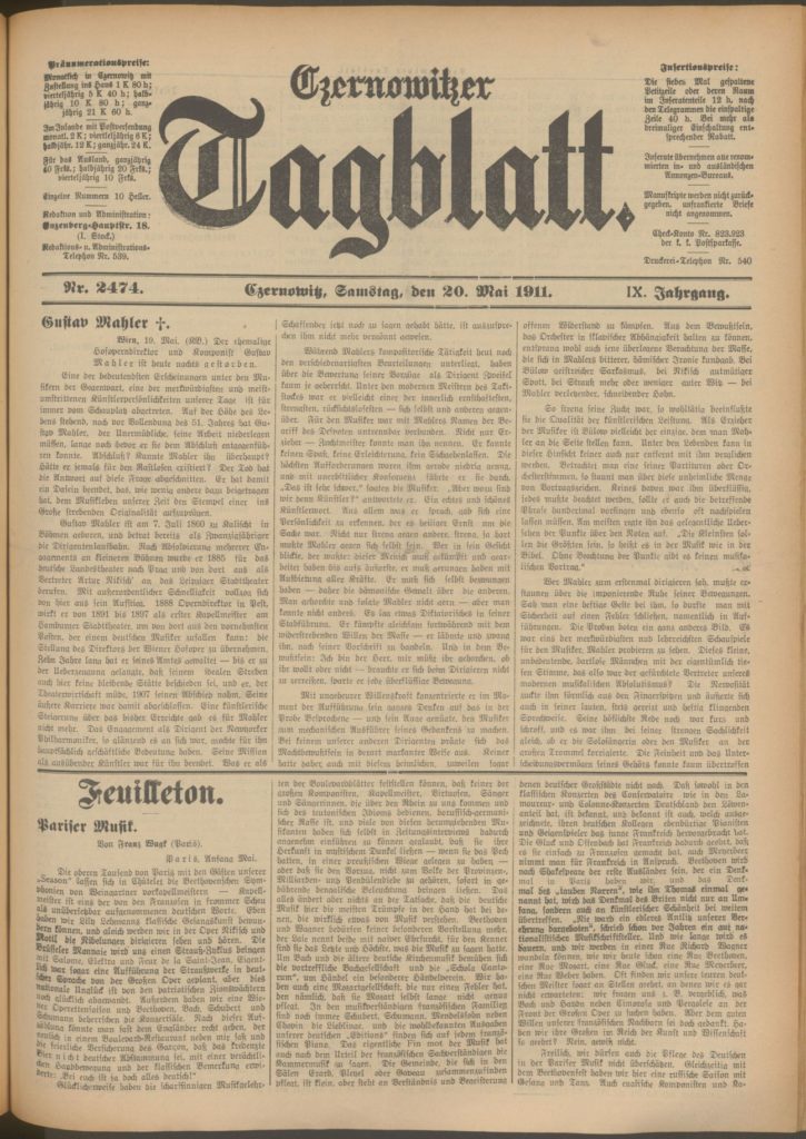 Like the Czernowitz Deutsche Tagespost and the Czernowitz Morgenblatt, the Czernowitzer Tagblatt