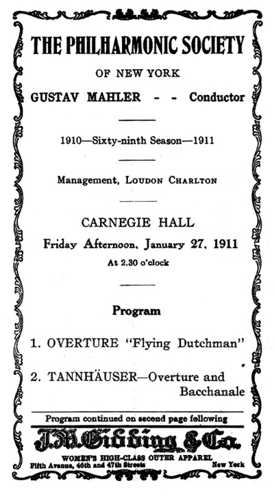 Chronology: Year 1911 Location: Carnegie Hall Nature: Extra concert Program: All Wagner