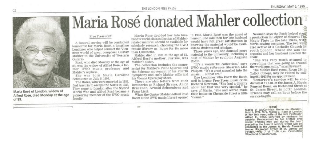 The Gustav Mahler-Alfred Rosé Collection, Music Library, University of Western Ontario, Canada.