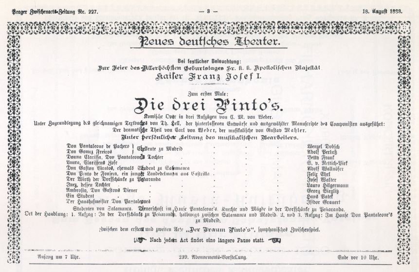 Chronology: Year 1886 Location: Prague Koniglich Deutsches Landestheater Program: Mozart: Die Entfuhrung