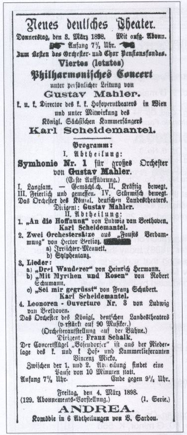 Chronology: Year 1898. Location: Neues Deutsches Theatre (State Opera). Nature: Fourth philharmonic