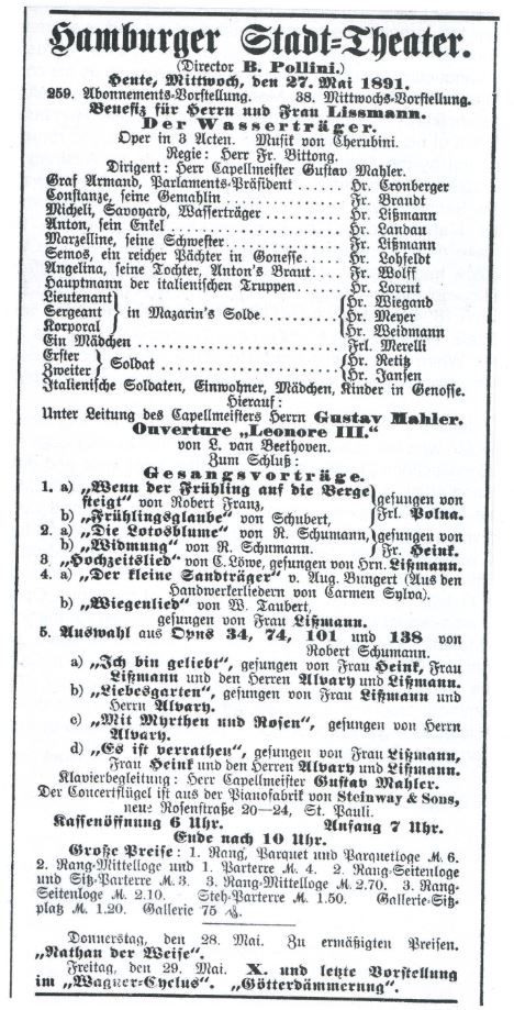 Chronology: Year 1891 Time: 7 pm Location: Stadttheater Nature: Annual benefit for