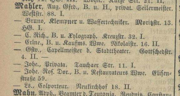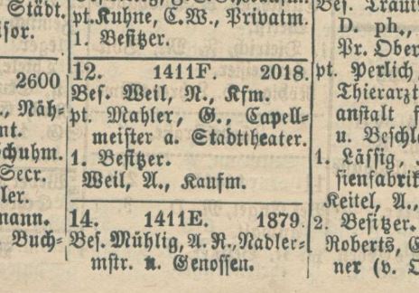 Year 1887. Year 1888. 01-02-1887 until spring 1888. Gustav-Adolph-Strasse now Gustav-Mahler-Strasse. Owner: