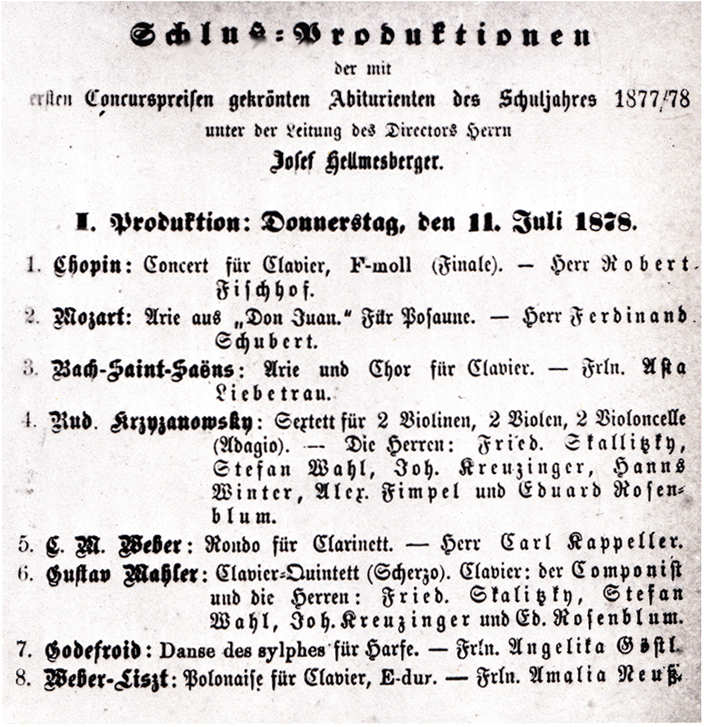 Chronology: Year 1878 Location: Conservatory of Vienna, Big hall. Golden Saal. Nature:
