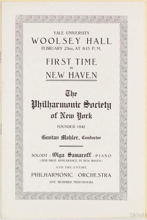 Chronology: Year 1909 Location: Carnegie Hall Nature: First sunday afternoon concert Program: