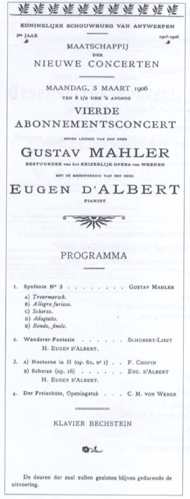 Chronology: Year 1906 Location: Royal theater of Antwerp Nature: Fourth subscription concert