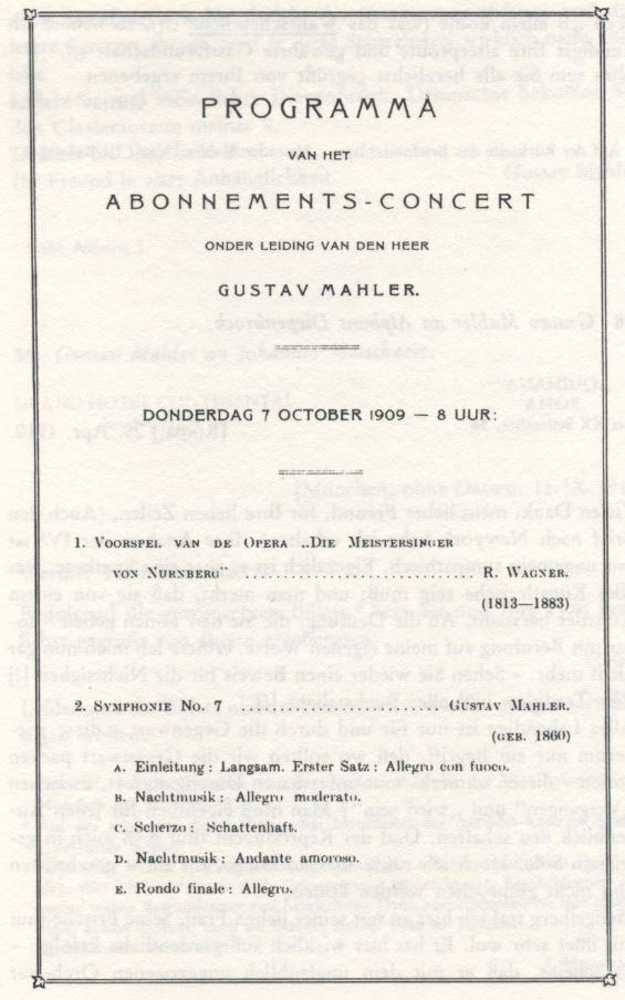 Program: Mahler, Beethoven Date: Sunday 03-10-1909 Time: 2.30 pm Nature: Subscription concert