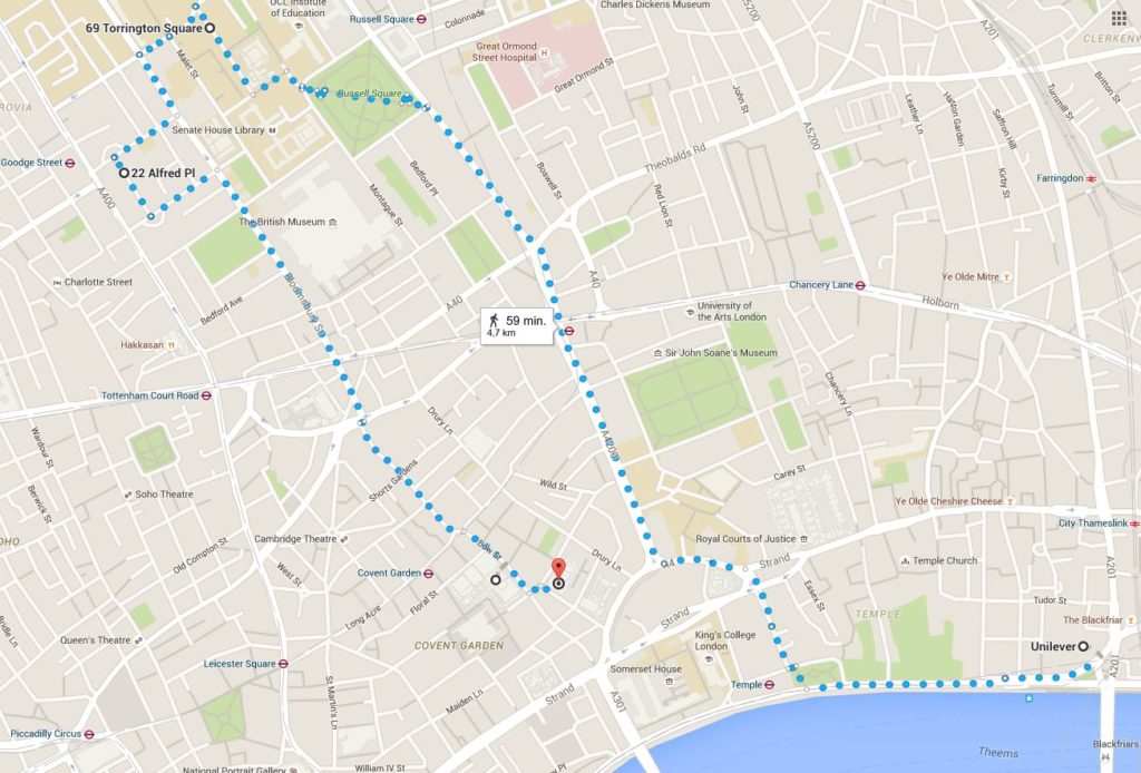 22 Alfred Place; just off Tottenham Court Road, close to Goodge Street