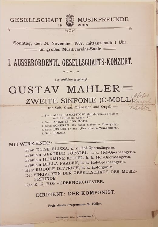 Chronology: Year 1907 Location: Gesellschaft der Musikfreunde (Musikverein, Musikvereinsplatz No. 1) Nature: