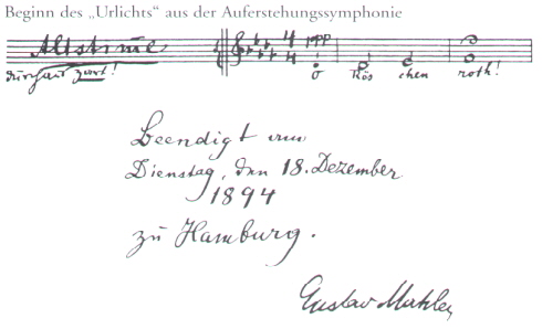 Year 1894. Signature Gustav Mahler (1860-1911). 18-12-1894 Hamburg, Sign off Manuscript Symphony
