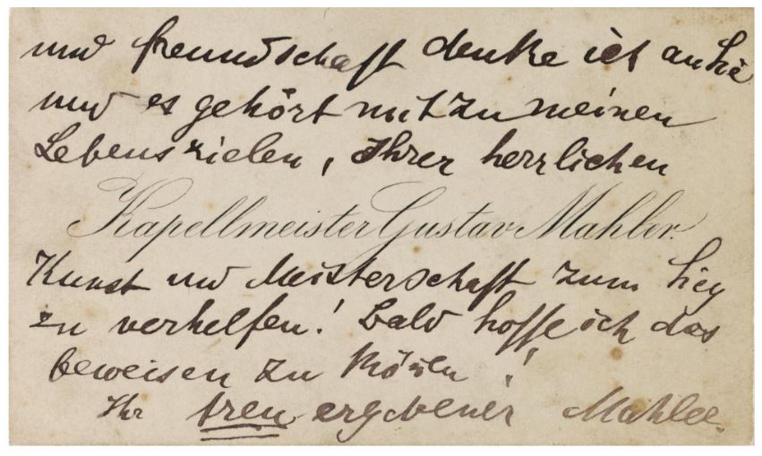 Business card Kapellmeister Gustav Mahler (1860-1911). Printed visiting card signed and inscribed