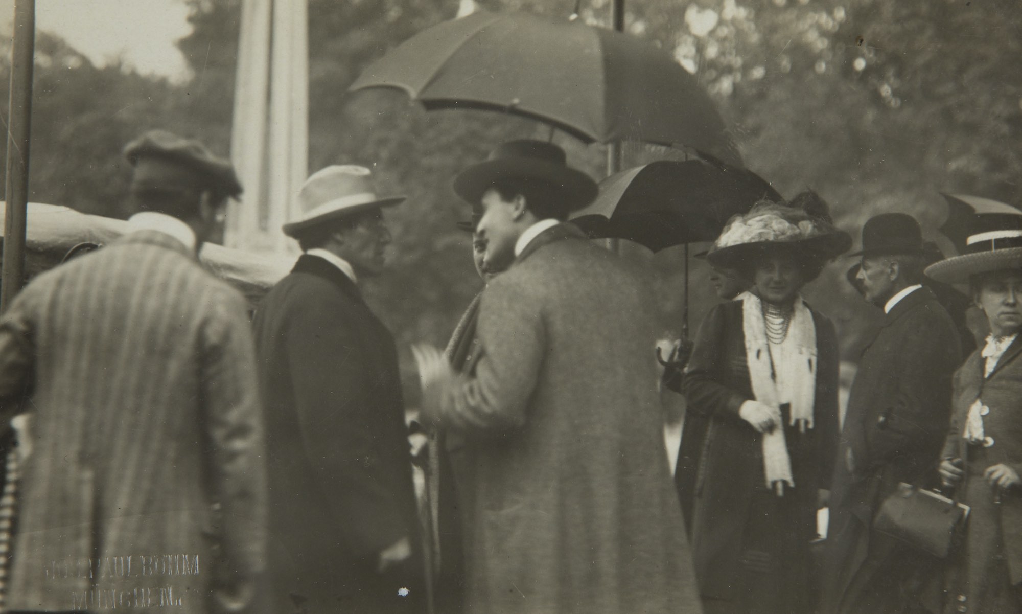 98. 1908. Prague. Mahler with Ossip Gabrilowitsch (1878-1936) (in the back) and Bruno Walter (1876-1962) (right).