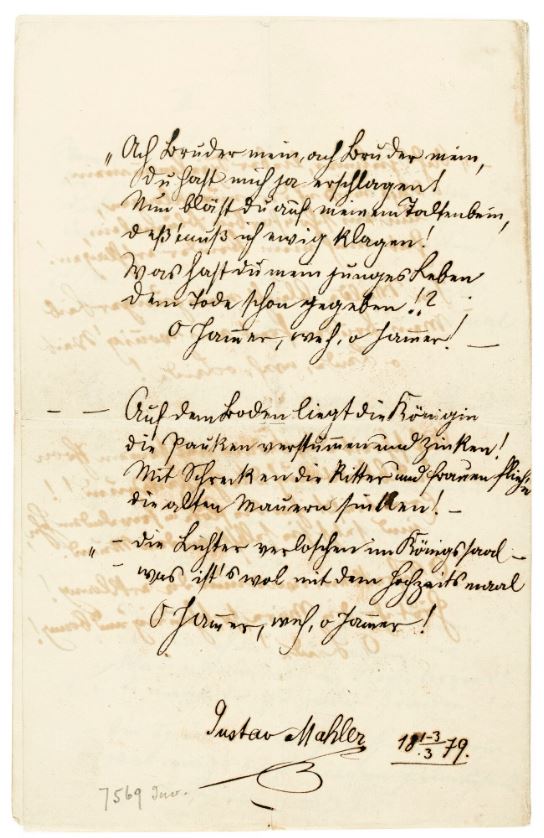 Composed Performances by Gustav Mahler Versions Year 1879. 03-03-1879. Letter by Gustav Mahler (1860-1911) to Anton