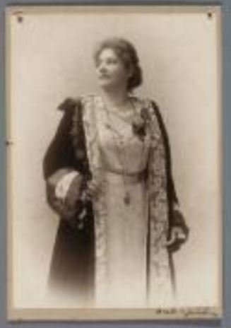 American contralto Adrienne von Kraus-Osborne (born Adrienne Eisbein) as Waltraute. She studied in Germany with Auguste Gotze (Leipzig) and Felix von Kraus (1870-1937), who became her husband in 1899. Her debut (1893) was at the Leipzig Opera. She sang there until 1908 and them became a member of the Royal Opera in Munich. She appeared at the Bayreuth Festivals from 1902-1909.