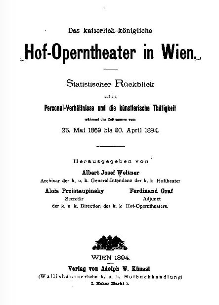 1919. 50 Jahre Wiener Operntheater. Eine Chronik des Hauses und seiner Künstler in Wort und Bild, der aufgeführten Werke, Komponisten und Autoren vom 25. Mai 1869 bis 30. April 1919 by Alois Przistaupinsky (1852-1943).