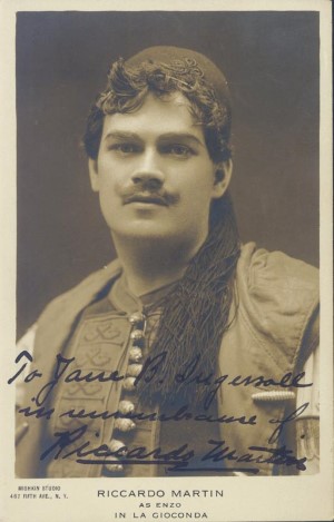 Martin remained with the Metropolitan through the 1914-15 season, appearing in numerous leading tenor roles; he was among the first American-born leading men the company employed. He returned for the 1917-18 season. During his tenure at the Met, he created the lead tenor roles in three American operas: Walter Damrosch’s Cyrano, Horatio Parker’s Mona, and Frederick Shepherd Converse’s The Pipe of Desire. After leaving the company he appeared with numerous companies throughout America and Europe, and spent three seasons with the Chicago Civic Opera. Martin died in New York City in 1952.