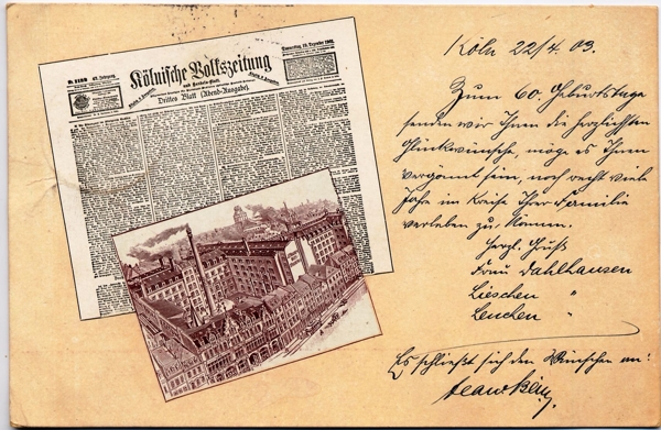 Richard Horn (0000-0000). Kölnische Volkszeitung. Postmark: 23-04-1903.