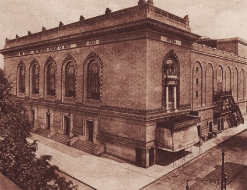 After the building burned to the ground on November 30, 1903, plans were made to relocate to a new facility in the then fashionable neighborhood of Fort Greene. The cornerstone was laid at 30 Lafayette Avenue in 1906 and a series of opening events were held in the fall of 1908 culminating with a grand gala evening featuring Geraldine Farrar and Enrico Caruso in a Metropolitan Opera production of Charles Gounod’s Faust. The Met would continue to present seasons in Brooklyn, featuring star singers such as Caruso, right through until 1921.