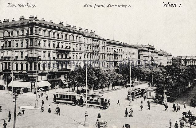 The Hotel Bristol opened in 1892 – at a building on the other side of the block. But the hotel soon extended “to grow into” today’s corner. Between 1916 and 1945, the Hotel Bristol was so large that it stretched the entire front of Kärntner Ring 1-7. During that time the hotel still boasted the Grill Room, a Titanic-style dining room. Neither the room nor the ship exists any longer. With its prominent address Kärntner Ring 1 today, the Hotel Bristol is the hotel next to the Vienna State Opera, with 150 rooms and suites.