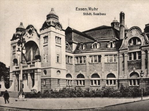 In 1901, the town hall was torn down and a much more spacious and prestigious concert hall was erected on the same site – the first hall building. The town councilor and Essen entrepreneur Richard Bömke, in particular, has made a special contribution to this, whereupon he was appointed as a commercial councilor. The building was built according to a two-stage architectural competition, from which the joint design of the architects Skjøld Neckelmann (Stuttgart) and Carl Nordmann (Essen) was designed. The foundation was laid on June 9, 1902. On the occasion of the solemn inauguration on September 24, 1904, Strauss directed. The architecture of the building was clearly influenced by the art of the Jugendstil.