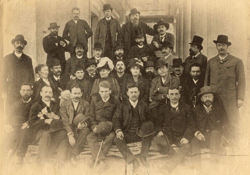 Year 1889. Budapest. On an excursion with the members of the Budapest Opera House Orchestra, Gustav Mahler (1860-1911) is seated in the second row next to his sister Justine (Ernestine) Rose-Mahler (1868-1938).